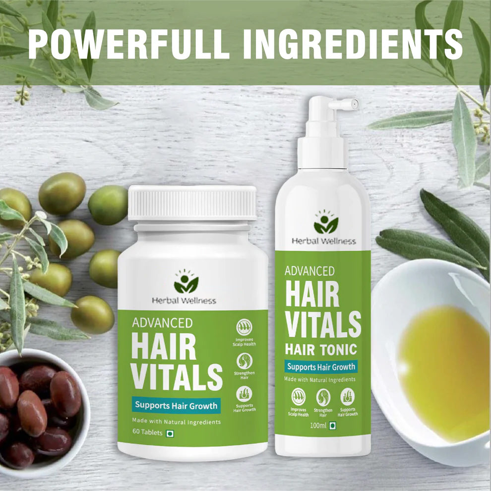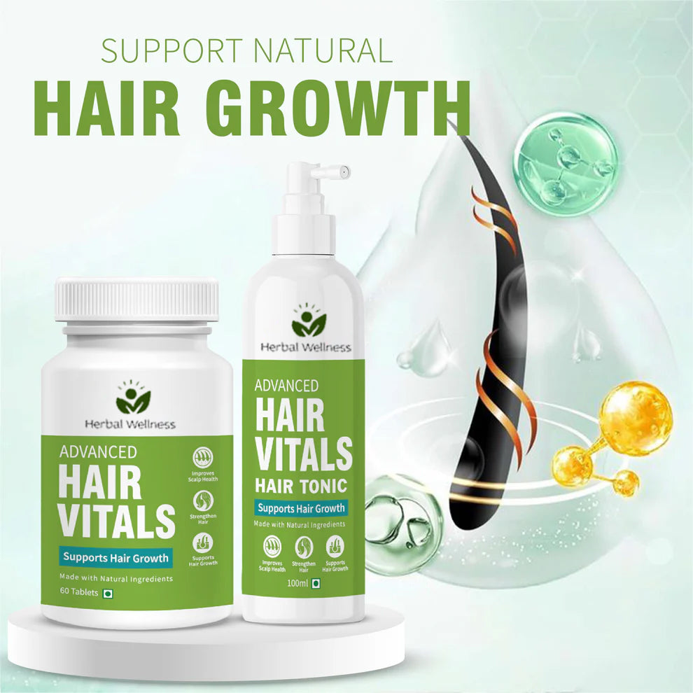 Experience the power of nature with Herbal Wellness Advanced Hair Vitals, a complete hair care solution designed to promote stronger, healthier, and thicker hair. This advanced formula, available in both tablet and tonic form, is enriched with natural ingredients that work together to strengthen hair roots, improve scalp health, and support hair growth. Whether you're dealing with hair thinning, breakage, or slow growth, Herbal Wellness provides the perfect balance of nutrients to rejuvenate your hair from within and externally.