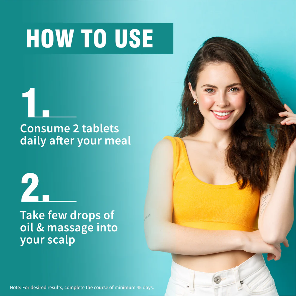 Supports and Nourishing Oil are specially formulated to promote healthy, strong & naturally growing hair. The Hair Growth Supporter tablets provide essential nutrients that help strengthen hair from the roots, reduce hair fall, and support overall scalp health. Complementing this, the Nourishing Oil deeply conditions the scalp, enhances blood circulation, and improves hair texture, making it shinier and thicker. Made with natural ingredients, this powerful combination works from within and externally to restore hair vitality, prevent breakage, and encourage fuller, healthier hair.